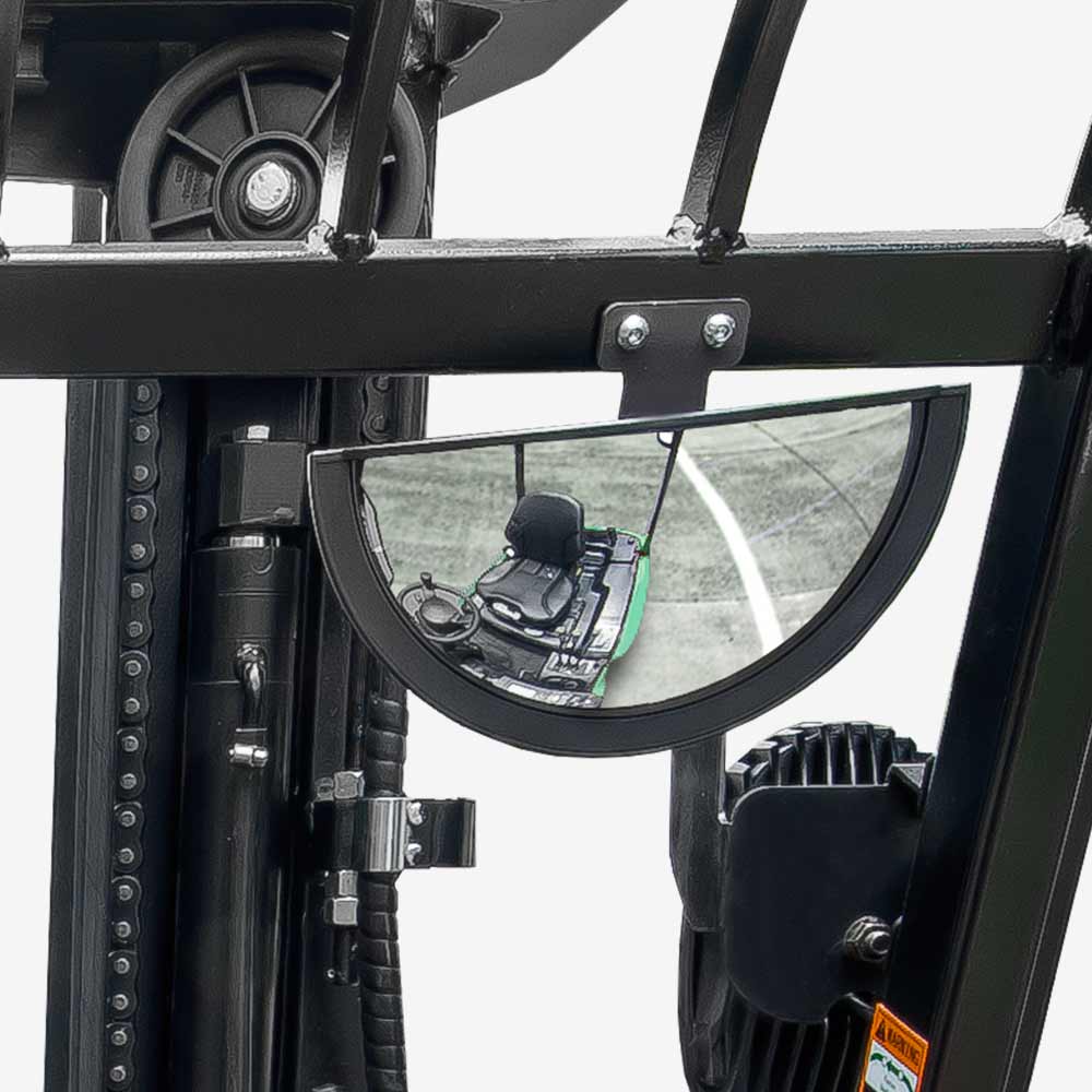 넓은 시야를 제공하는 매스크와 낮은 대시보드의 최적화된 디자인은 넓은 전방 시야와 더 높은 안전성을 제공하며, 시야의 미관을 최소화합니다. 표준 구성에 갖추어진 비상 정지 스위치는 유럽 안전 기준을 준수합니다. 전자 및 유압 과부하 보호 장치는 안전 규정에 부합합니다.