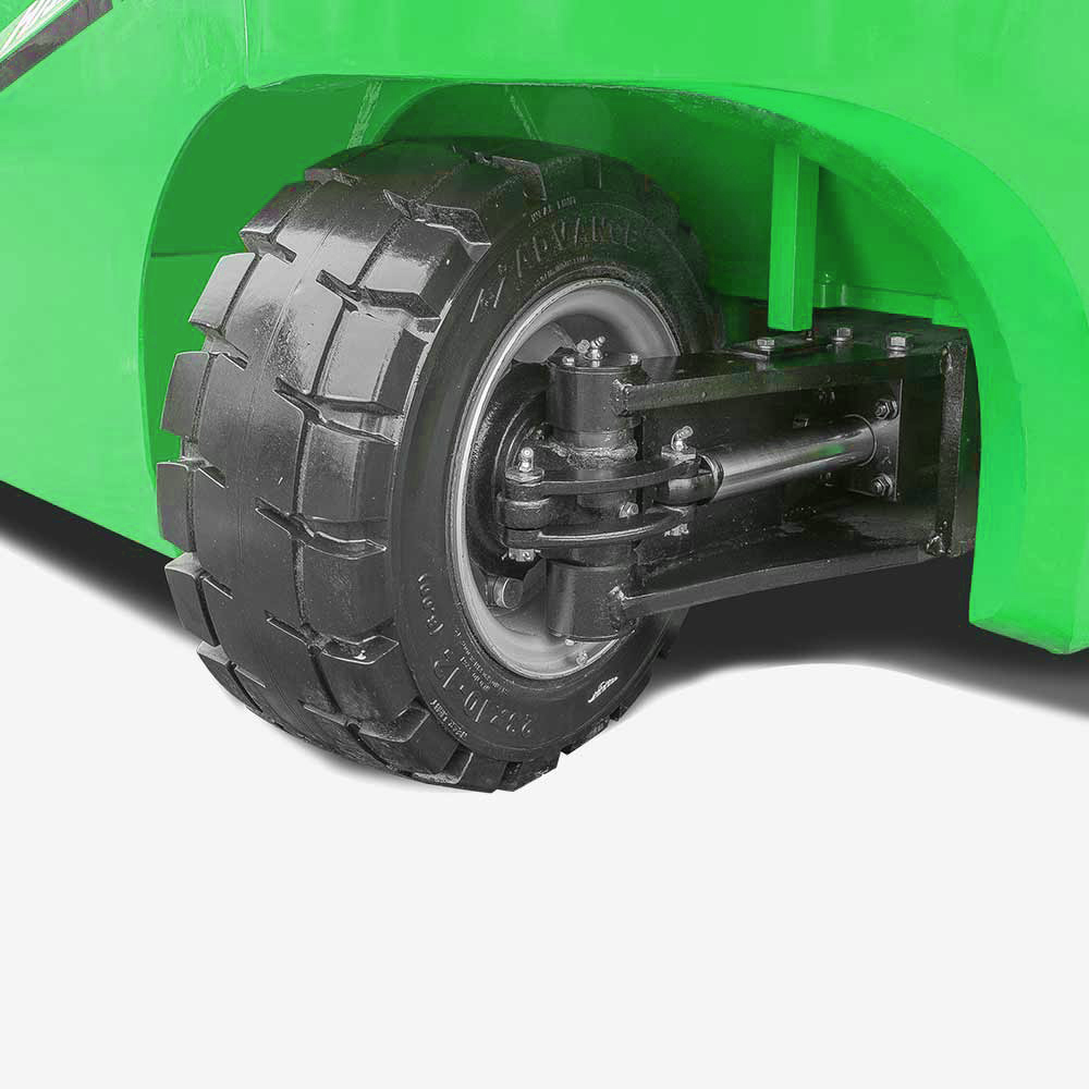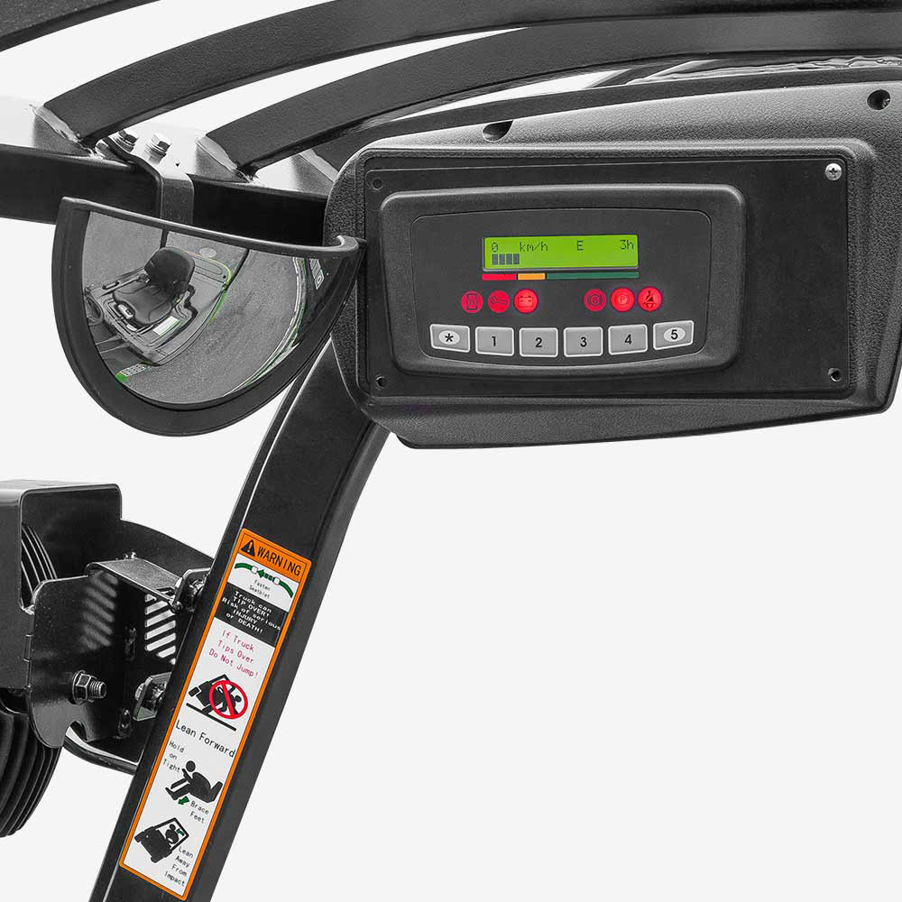 배터리와 카운터웨이트가 낮은 중심을 가지도록 배열되고 설계되어 있어, 이 차량은 낮은 중심과 좋은 안정성을 가지고 있습니다.