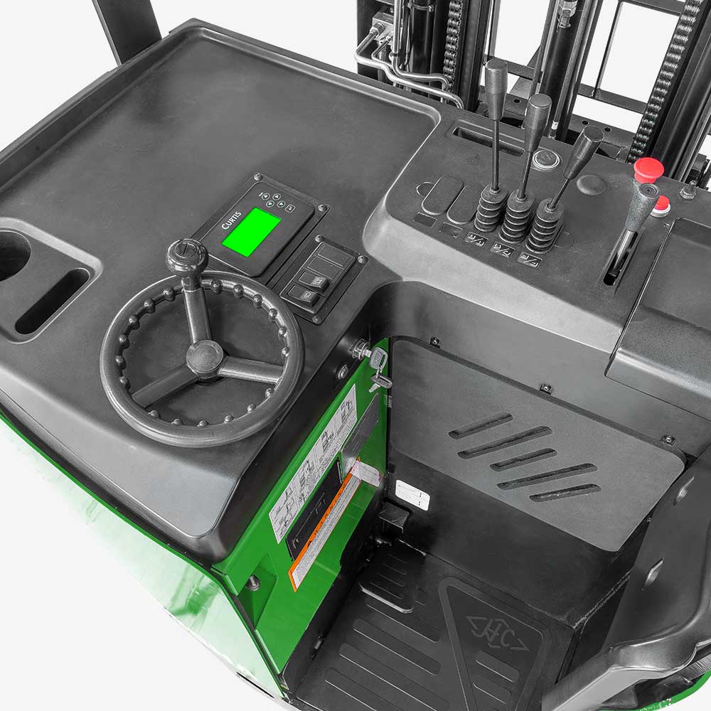 AC장치, 정밀한 속도 조절, 유지보수가 필요 없는 모터, 온도 모니터링 등의 기능이 있습니다. 지게차는 AC 컨트롤러로 장착되어 있어 컴퓨터에 의해 주행, 조향, 들기, 기울기 등의 동작을 제어할 수 있습니다.