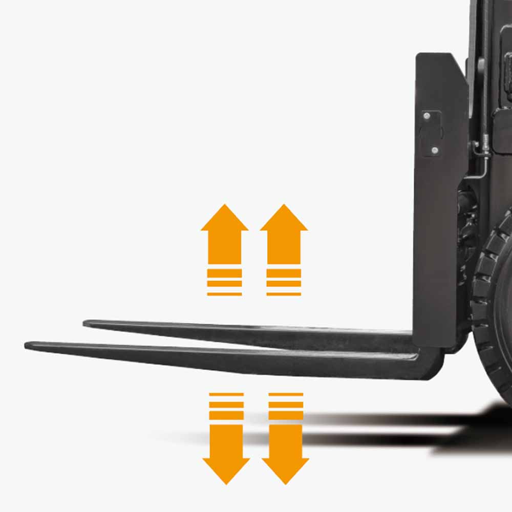 AC장치, 정밀한 속도 조절, 유지보수가 필요 없는 모터, 온도 모니터링 등의 기능이 있습니다. 지게차는 AC 컨트롤러로 장착되어 있어 컴퓨터에 의해 주행, 조향, 들기, 기울기 등의 동작을 제어할 수 있습니다.
